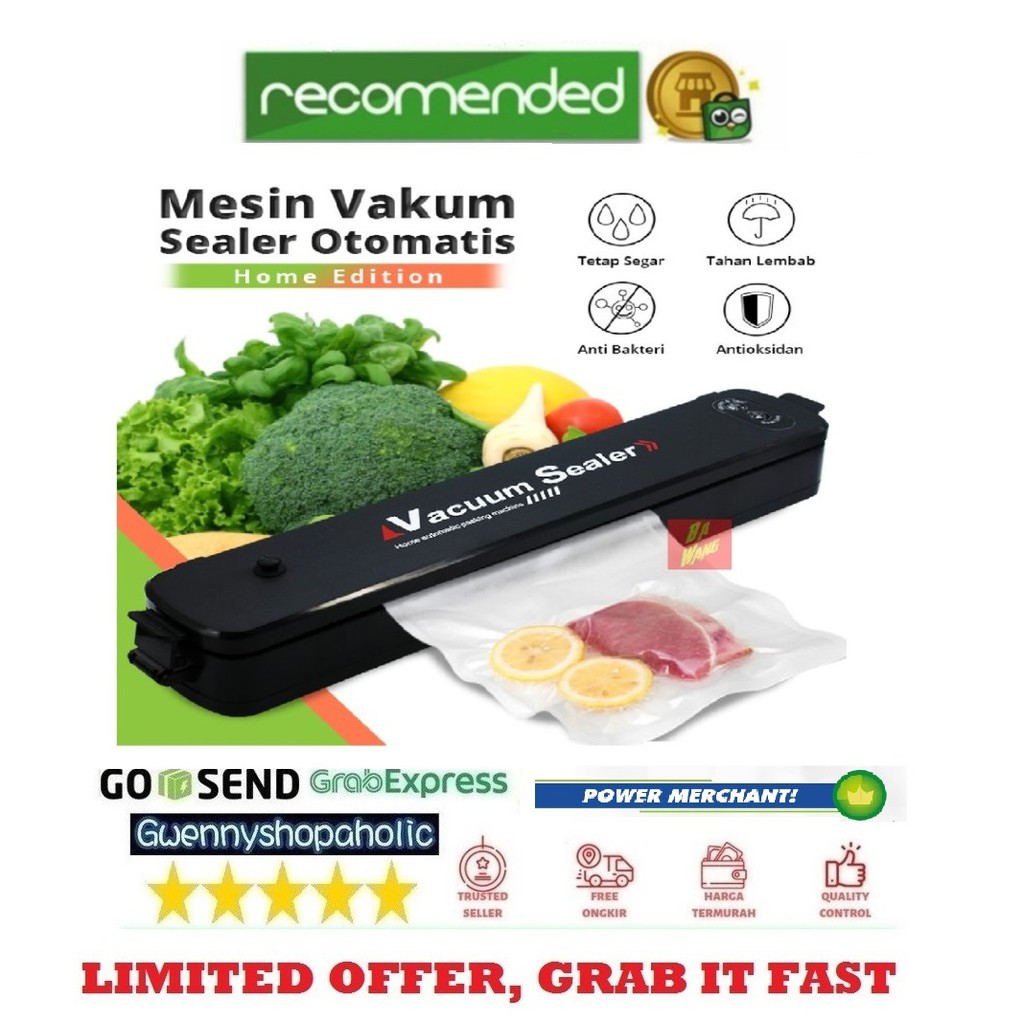 Vacum vacuum vakum sealer Lp11 merupakan produk Premium perpaduan antara daya tahan dan model yg elegant.Anda sudah bosan dengan vacuum sealer yg mudah rusak karena korsleting dan element yg cepat putus.Saatnya memilih vacuum sealaer Lp11 ini dan anda terbebas dari masalah2 karena mesin vakum rusak.Mesin ini berfungsi untuk membungkus ataupun menyegel makanan Anda agar tetap fresh, awet, dan segar.Seperti daging, ikan, sayuran, kacang-kacangan dll.Anda juga dapat menggunakan sealer elektrik ini untuk melakukan pengemasan bagi produk makanan yang akan Anda jual.**Cara kerja mesin ini adalah mengosongkan udara dikemasan plastic agar makanan lebih tahan lama.Sangat cocok bagi Anda yang sering jalan jalan atau membuka usaha di bidang kuliner.*Size Product 380x65x55 mm*Vacuum Pressure : 500mmHg*Voltage : 220V/50Hz*Motor Capacity : 70 Watt*Seal Size : 280mm x 2 mmIsi Dus & Kelengkapan :*1 Unit Vacuum Sealer ZKFK-001*Manual Book / Buku Petunjuk Penggunaan.*Free 10 Lembar Plastic Emboss : 15x20cm (10