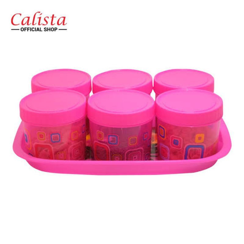 Calista TONAM Set 7 in 1 merupakan wadah penyimpanan dari Calista. Wadah ini terbuat dari plastik polypropylene yang bebas BPA. Dengan wadah ini Anda dapat menyimpan berbagai macam makanan seperti camilan dan lainnya. Produk ini dibuat dengan mengedepankan kepraktisan dalam menyimpan makanan. Cocok digunakan untuk menyimpan makanan di rumah ataupun pergi piknik. Dengan design dan warna yang menarik dapat menghiasi rumah anda, cocok untuk menjamu tamu saat Lebaran.Bahan BerkualitasProduk ini dibuat dari bahan Polypropylene Plastic berkualitas yang menjadikannya awet dan tahan lama. Plastik ini juga tidak mudah pecah dan tidak mudah bocor sehingga Anda tidak perlu meragukan lagi kualitas produk ini. Bahan BPA FREE sehingga aman untuk Anda dan anak-anak Anda.Tahan Panas dan DinginTak perlu khawatir lagi untuk mengeluarkan makanan dari wadah dan menaruhnya di wadah baru untuk mendinginkan ataupun memanaskan makanan, karena produk ini tahan panas dan tahan dingin.Dalam 1 set terdiri dari:1 buah Nampan dengan ukuran 42,5 x 30 x 3 cm (sebagai alas toples)6 buah Toples dengan ukuran 12 x 12 x 11 cm lengkap dengan tutupPilihan warna:-PINK-HIJAUBerat = 700 gramDimensi = 43 x 31 x 13 cm (berat volume