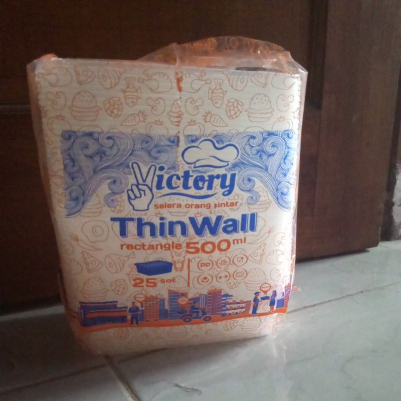 Thinwal Merk VictoryHarga yang tertera per packIsi per pack= 25pcsPanjang x lebar atas semua ukuran : 17 cm x 11,5 cmDetail ukuran Tinggi(T) x Panjang Bawah(PB) x Lebar Bawah(LB)* 500 ml T. 3,5cm ; PB. 15 ; LB. 9,5* Harga sudah termasuk dengan tutupnya*Tutup dijamin rapat*Aman untuk Micromave Oven*Bisa untuk Freezer*Aman untuk makananBarang Ready siap kirim. Baca dahulu deskripsi barang dengan teliti sebelum membeli. Kesalahan membeli bukan tanggung jawab kami. Untuk packing lebih aman kami sarankan untuk menambahkan bubble wrap dari toko kami dihttps://shopee.co.id/product/392988816/11201105371?smtt=0.393008393-1619785488.9NB : Barang yang sudah dikirim sudah melalui pengecekan dan dikirim dalam keadaan bagus. Kerusakan dalam pengiriman bukan tanggung jawab kami. Maka dari itu kami sarankan untuk menambahkan bubble wrap untuk pengiriman lebih aman. Packing kami hanya menggunakan kardus dan plastik pack