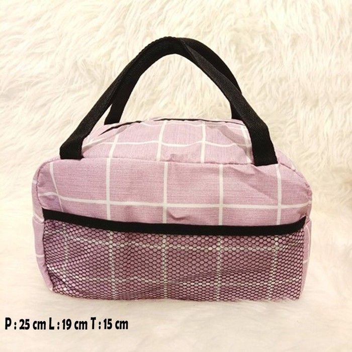 Paling Murah Perlengkapan di Kota Tegal Tas Bekal Import Terbaru Insulated Bag M105 B Checked Pink Blue Grey dari Tidak Ada Merek Kota Bogor