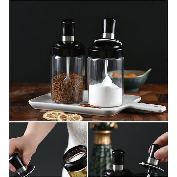 READY WARNA:HITAMToples bumbu dari bahan kaca tebal, fungsinya untuk tempat bumbu dapur seperti lada, merica, micin, garam, sambal dan sejenisnyaUniknya, botol bumbu ini dilengkapi sendok pada tutup botol, sendok sudah nempel di tutup botol.Tutup botol terdapat lapisan karet kedap udara, tutupnya sangat rapatDengan model sendok yang nempel di tutup botol, tuang bumbu dapur jadi mudah, tidak berlebihan, rasa masakan jadi lebih pas.Ada lapisan bahan stainless di bagian tutup botolBisa ditempatkan di dapur atau meja makan, dengan model kaca transparan memudahkan membedakan jenis bumbu yang tersimpan di dalam botolSize : 6.5 x 16 cmKapasitas : 2