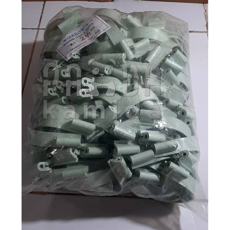Harga tertera adl harga 10 pcs.Terlengkap sedia Klem Pipa semua ukuran dari 5/8 inch sampai dengan 4 inch ARROW (lihat gambar 3).Kuantitas order = kelipatan 10 pcs. Pesan 1 = 10 pcs. Pesan 2 = 20 pcs, dst nya.Untuk pesan 1 plastik (100 pcs) silahkan chat kami agar kami bantu ubah berat nya.Yuk, disimak langsung detail produk nya :Klem Pipa 2 1/2 inch merk ARROW (sudah terjamin kualitas dan mutu nya).Ukuran = 2 1/2” (dua setengah inch).Bahan = plastikWarna = HijauApa saja yang didapat? 10 pcs Klem Pipa 2 1/2inch. Maaf tidak termasuk paku.Dapatkan voucher SUPER PROMO terbatas hanya di Panda Kamida.Follow Panda Kamida agar dapat update produk terbaru kak.Semakin banyak produk yang Anda beli, semakin besar juga promo yang Anda dapat. Silahkan chat untuk informasi lebih lanjut. Silahkan tambahkan ke keranjang untuk bertransaksi.Untuk pengambilan 1 Karung, silahkan chat untuk detail lebih lanjut. [ Semua barang sebelum dikirim sudah kami QC (cek) terlebih dahulu, terkecuali barang dalam kemasan / masih segel. Jadi maaf no komplain dan no retur... ]Terima