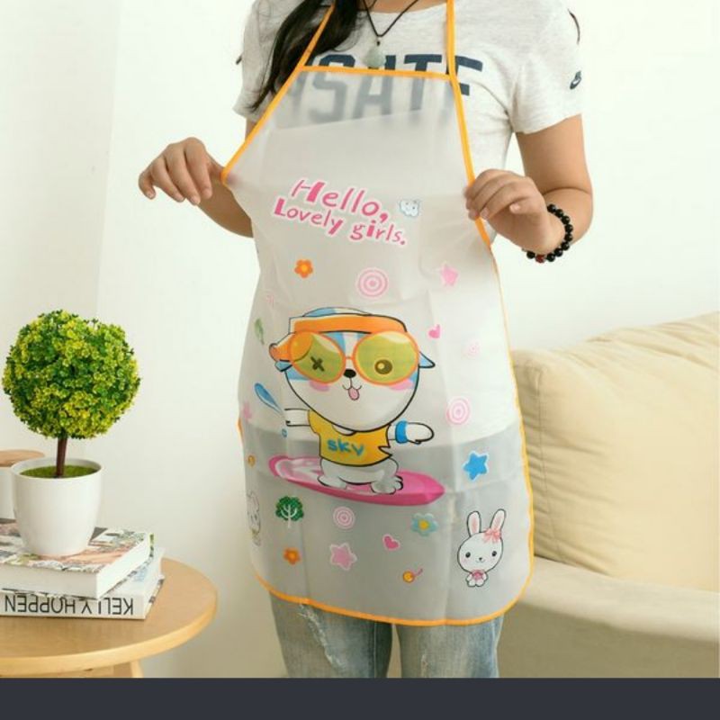 Banyak Pilihan Karakter !!!Yuk bagi yang suka masak.tingkatkan keamananmu dalam memasak sekaligus percantik dirimu saat di dapur.Murah Meriah & BermanfaatUkuran panjang 70 cm, lebar 50 cm.Bahan : pvc + kain anti air tranparantKorean Apron lucu tipe TRANSPARANT, dengan bahan anti air sehingga membuataktifitas di dapur terbebas dari kotor (minyak maupun air), dan mudahdibersihkan. INFO PENTING !Pengiriman Karakter RANDOM!!!1. wajib membeli pengaman packing ( bubble dan dos ) khusus barang yg mudah pecah , rusak di perjalanan bukan tanggung jawab penjual.2. wajib tulis permintaan warna/size pada saat order ,tambahkan keterangan KOSONG=CANCEL agar tidak di random. jika tdk ada ket. kosong cancel kita kirim sesuai stok yg ada tanpa konfirmasi.3. proses klaim kurang barang/salah barang harap sertakan bukti bukti lengkap ( seperti : kertas order yg menempel di paket ,video, dsb )#celemekmasak#celemektransparant#peralatanrumaht