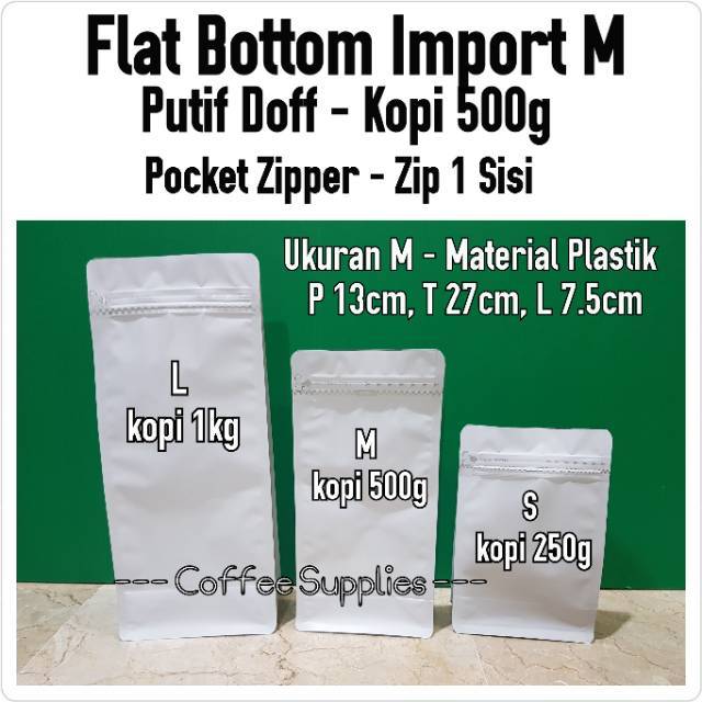 Name: Flat Bottom Matte White Putih Doff M Kopi 500g Kemasan Kopi Coffee Bag Packaging Import Pocket Zip